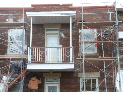 - En effet, la région de Montréal est soumise à d'importants cycles gel-dégel (fluctuations de la température au-dessus et au-dessous du point de congélation). Conjuguée au mouillage, l'action gel-dégel cause l'effritement de la maçonnerie. En règle générale, les cheminées, les parapets, les murs autoporteurs, les appuis de fenêtres, les escaliers extérieurs situés au niveau ou en dessous du sous-sol sont les éléments architecturaux les plus exposés à une dégradation importante.